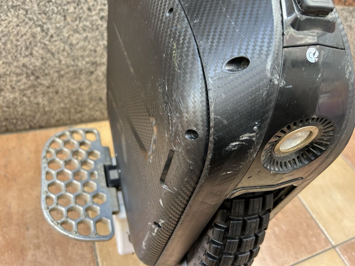 Моноколесо Begode EX.N (EXN) — 20″, 2700 Wh (100 V), мотор ~2800 W, реальная дальность 100–140 км, паспортная скорость до ~70–75 км/ч. Вес ~33 кг, длинные педали, trolley-ручка. Состояние б/у по фото. Недочёты учтены в цене: не работает свет, из 2 зарядных портов в строю 1 (зарядка штатным ЗУ 100 V/3 A через один разъём).